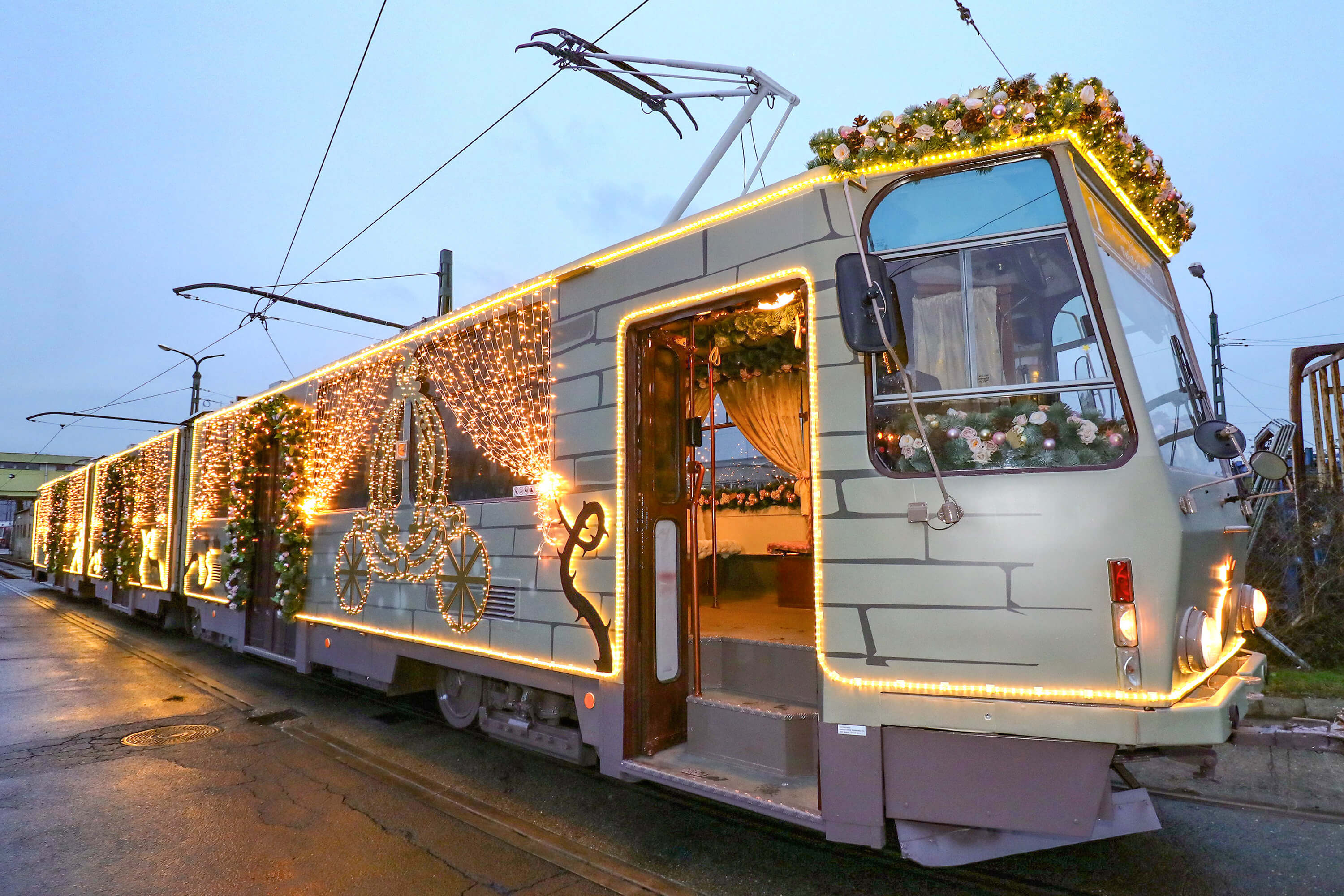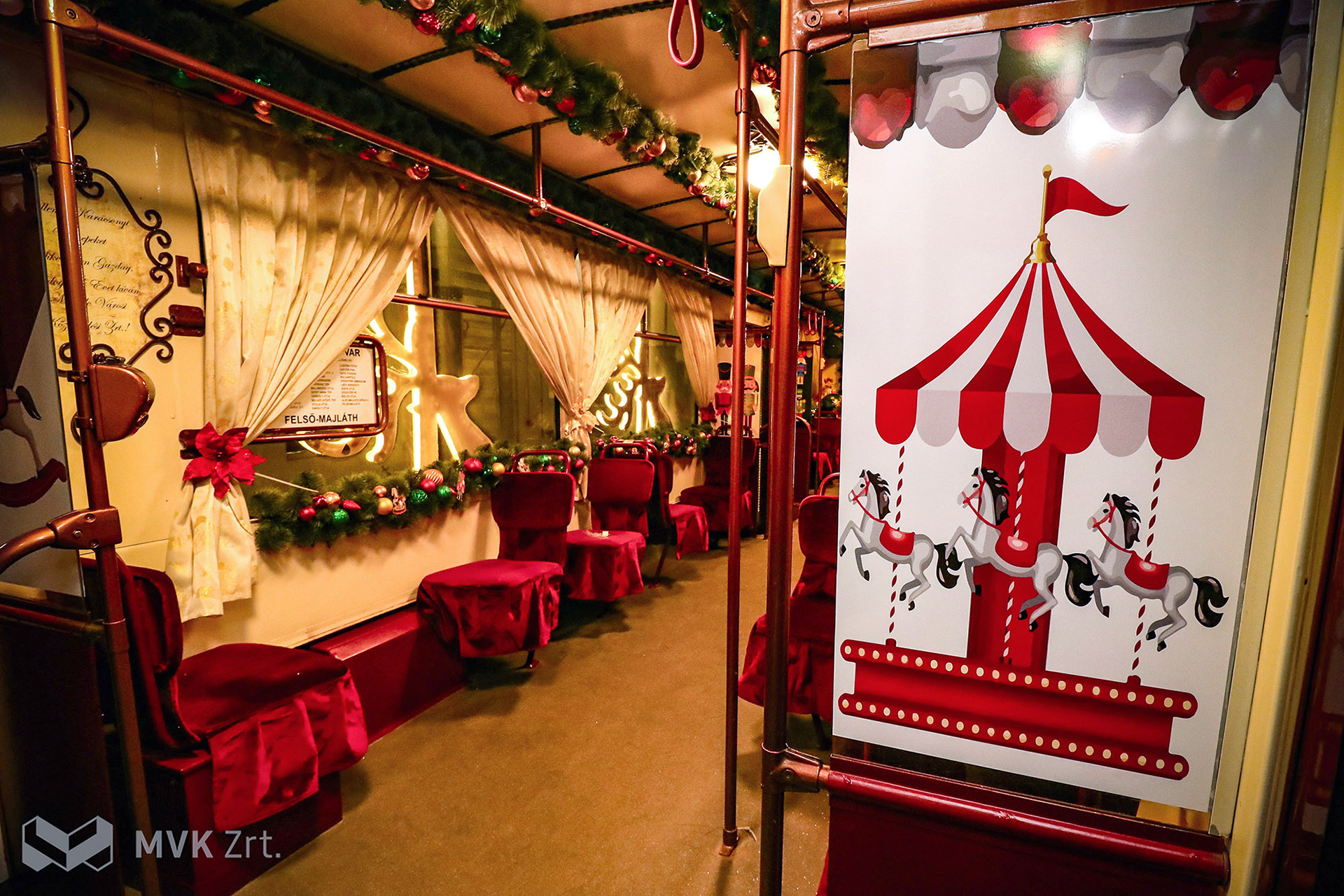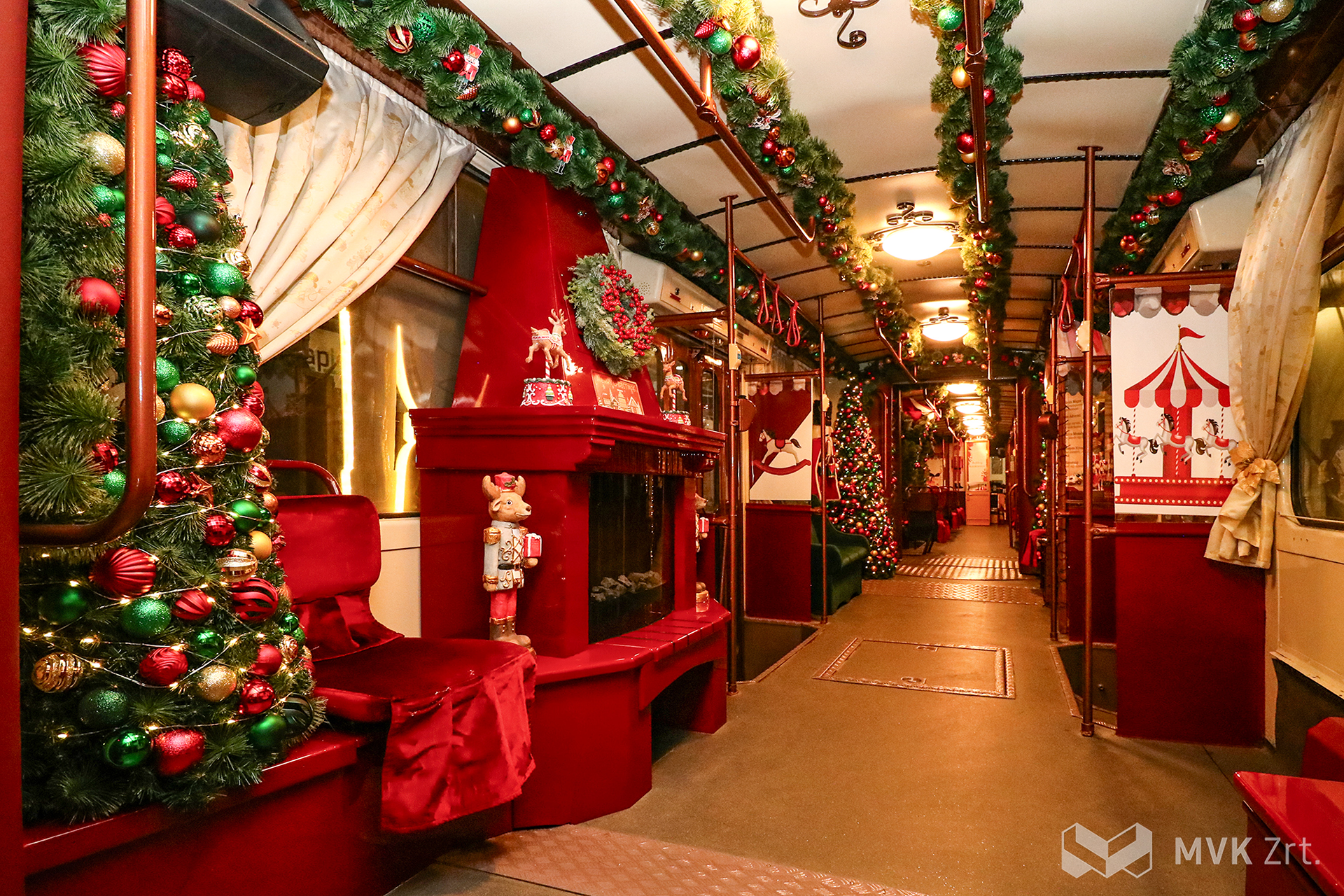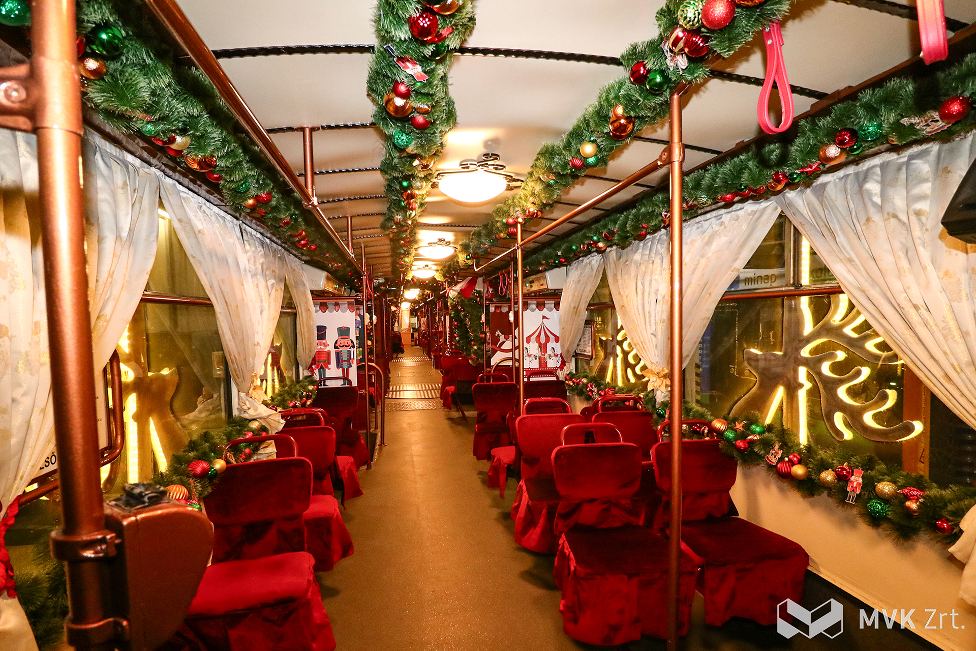 The idea of the Advent tram was first conceived in 2012, which ran on a regular schedule from the first Sunday of Advent between Tiszai pályaudvar (Tiszai Railway Station) and Felső-Majláth. The exterior of the red-coloured Tatra No. 201 tram was decorated with stickers and light curtains, while the interior was only getting a solid decoration at that time.