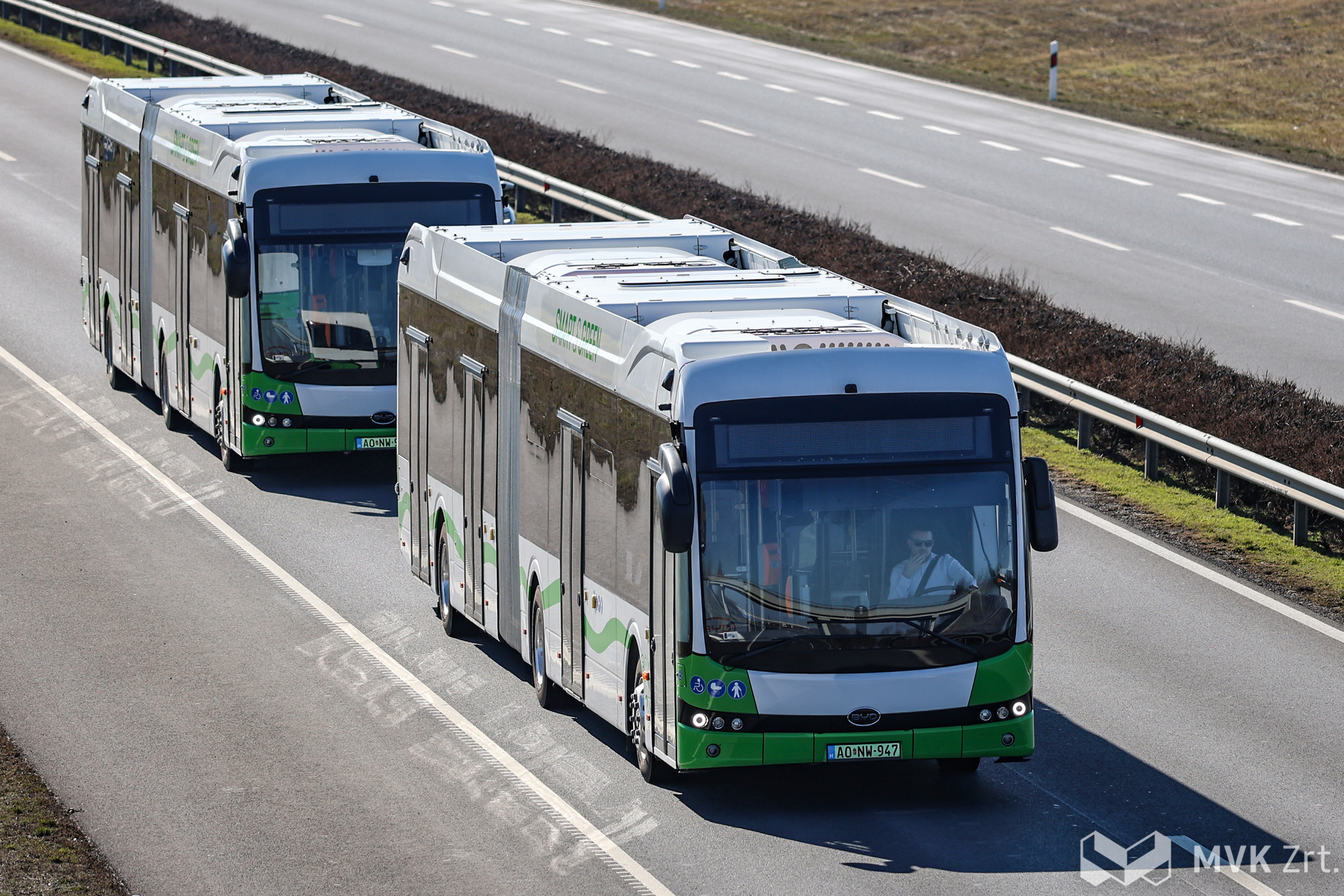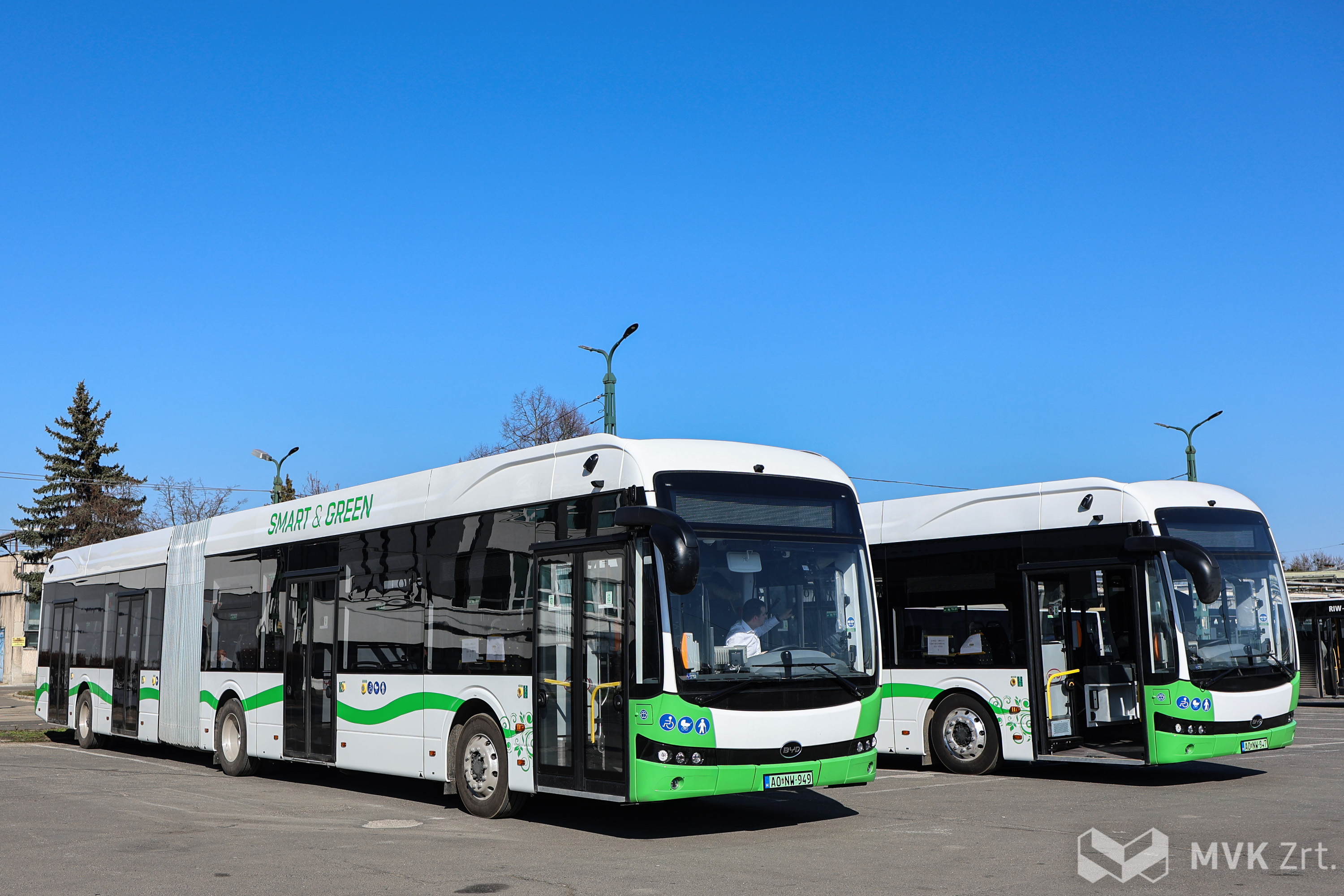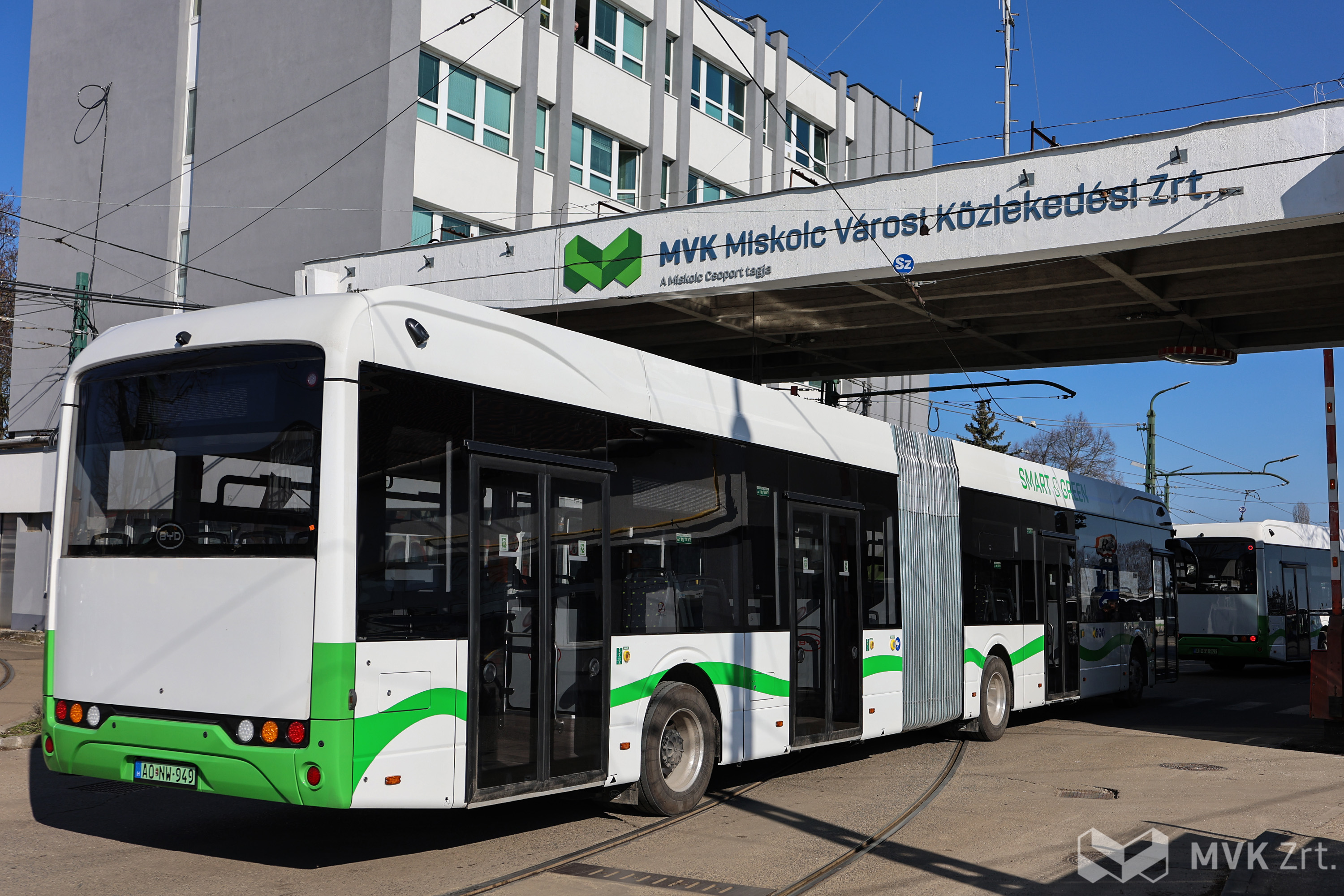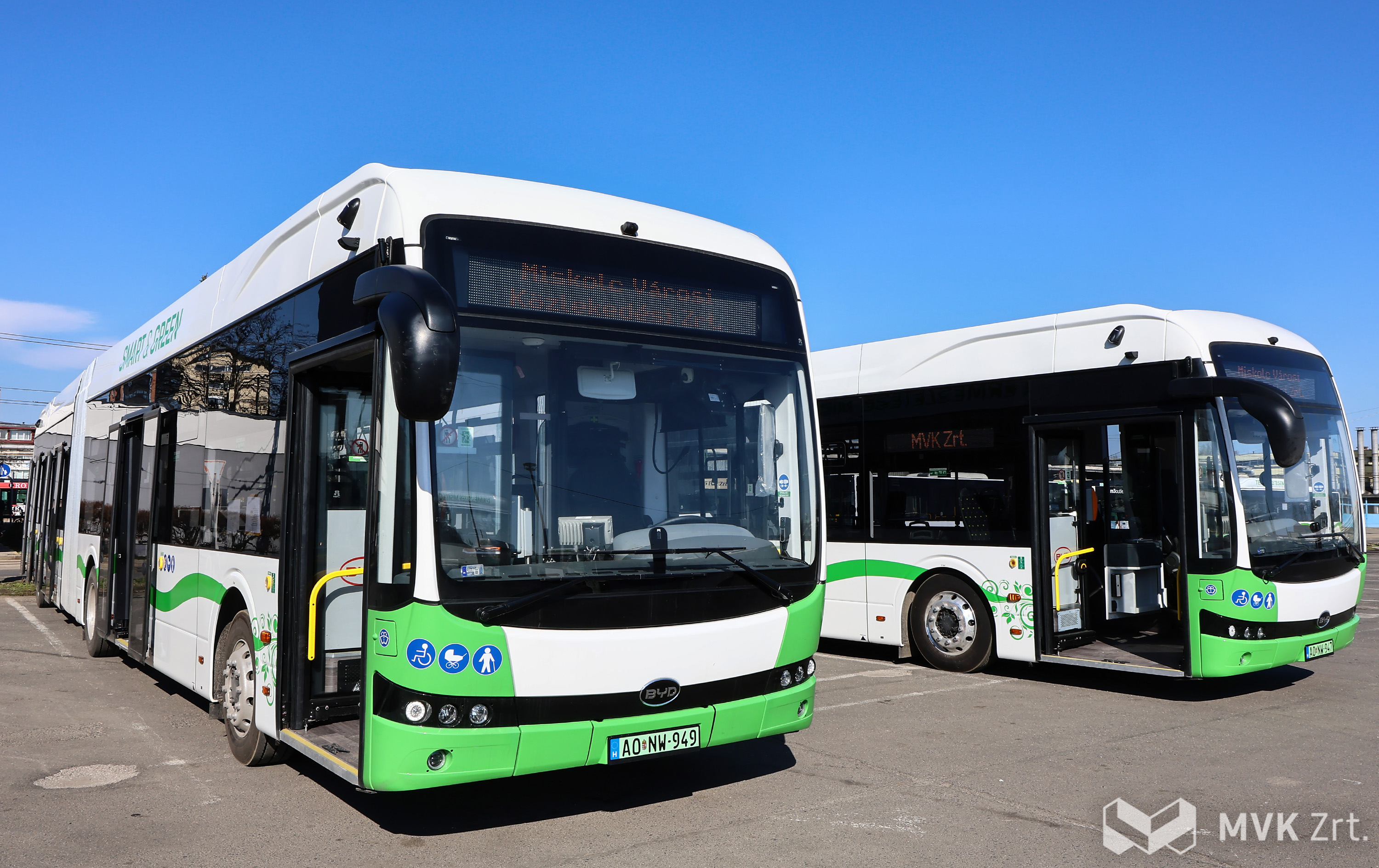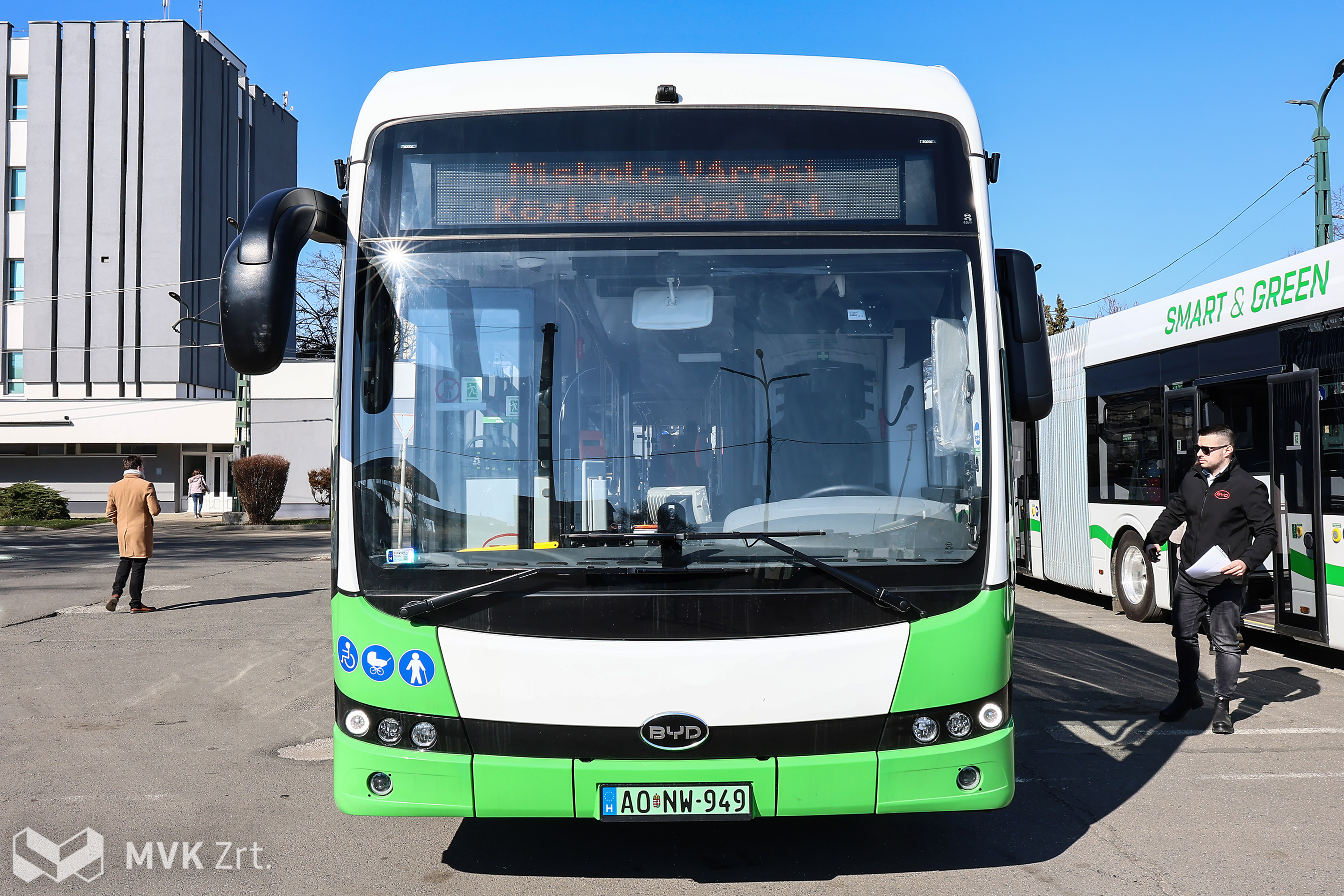 Begördültek Miskolcra az MVK Zrt. legújabb büszkeségei: megérkezett az első két BYD eBus B19 típusú elektromos csuklós autóbusz.