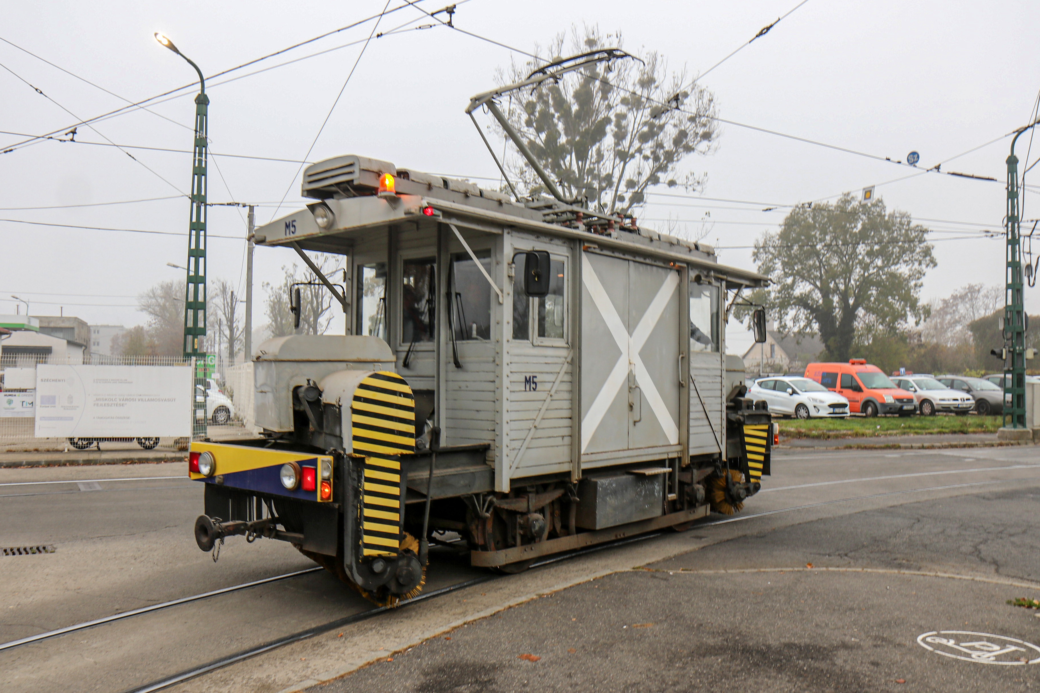 Ma különleges látványban lehet részük a miskolciaknak: az MVK Zrt. járműparkjának legidősebb darabja, a 114 éves M5-ös hóseprő ma oktatási céllal közlekedik a város villamosvonalain, a járművezetők rendszeres gyakorlását biztosítva.