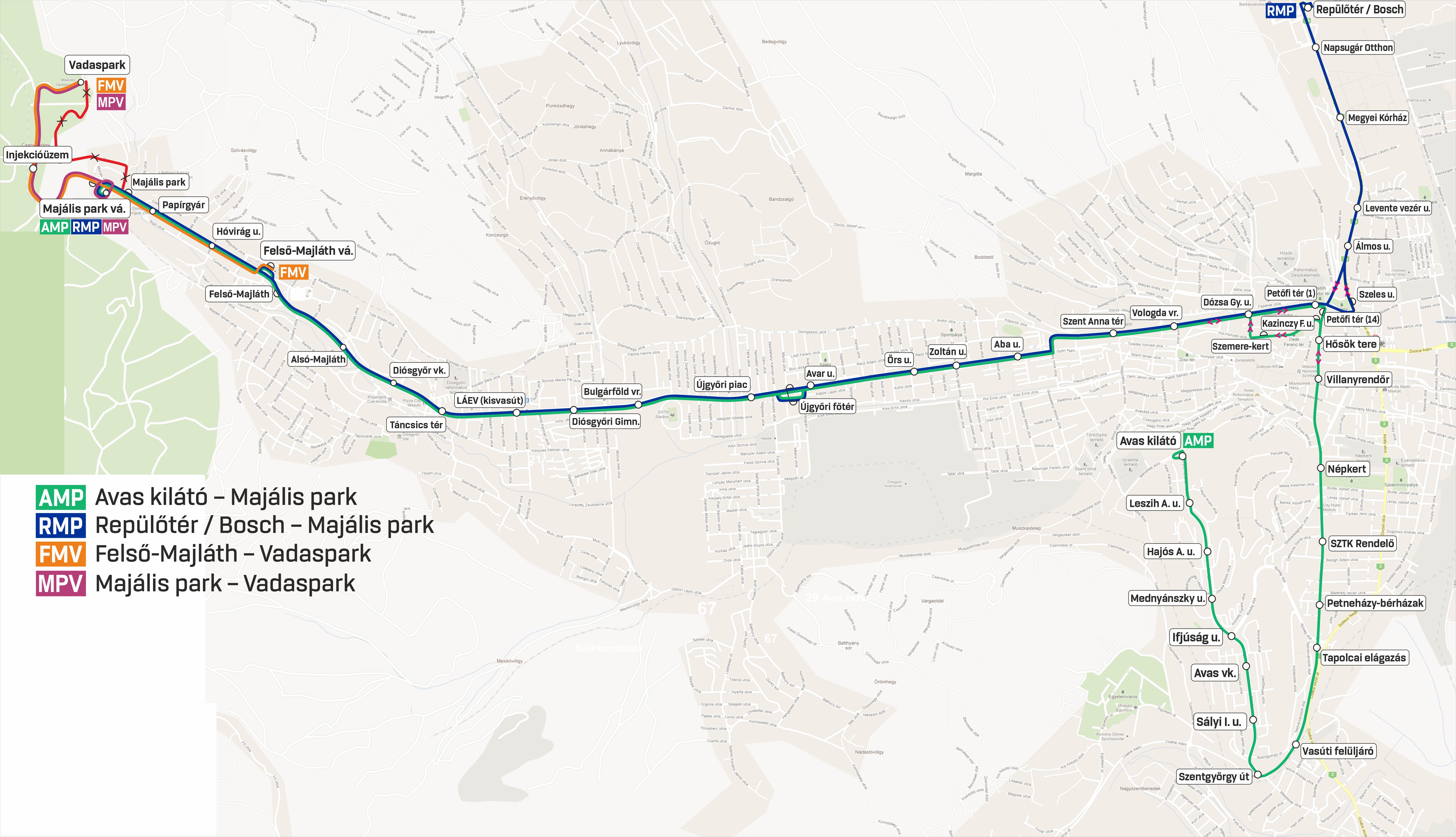 Repülőtér/Bosch végállomás – Majális-park (RMP):