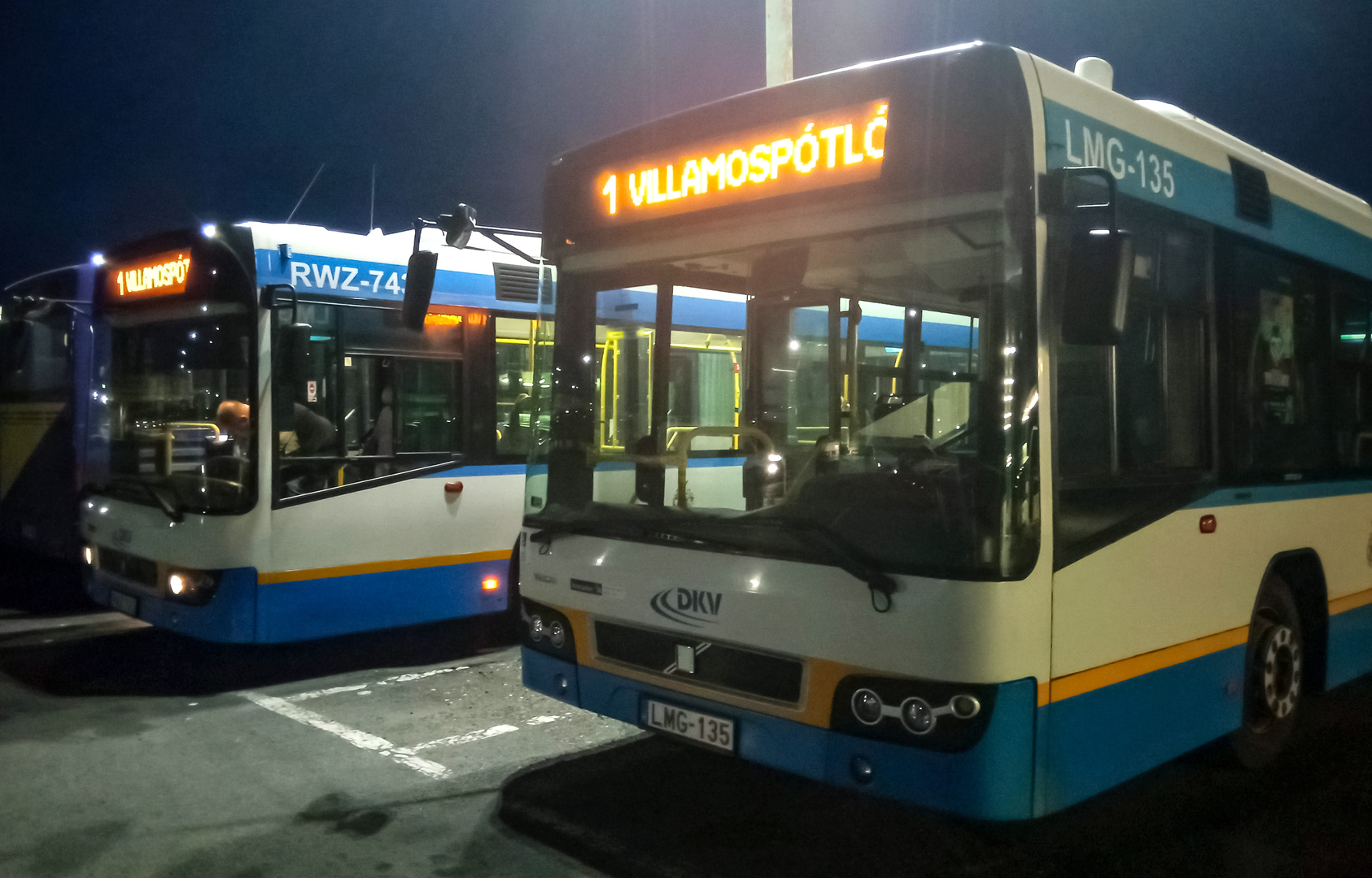 A szokásostól eltérően, kék-fehér színű Volvo típusú buszok is közlekednek majd villamospótló járatként. Ne lepődjenek meg a változáson, és bátran szálljanak fel ezekre a járművekre, amelyek ugyanúgy a meghirdetett villamospótló autóbusz útvonalon közlekednek és viszik Önöket úticéljuk felé.